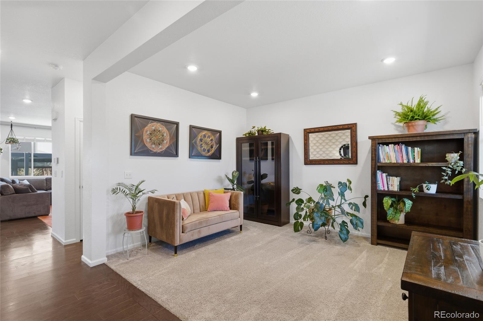Welcome to this beautifully maintained, move-in ready contemporary home offering an open layout, great natural light, and a new roof installed in November 2025. The main level features a flexible front room ideal for a home office or additional living space. The upgraded chef's kitchen includes granite countertops, updated Samsung appliances, and a generous island that opens to the dining area and the inviting living room with a cozy fireplace. Syrah Oak engineered hardwood, carpet, and tile flooring add warmth and style throughout. Comfort is enhanced by an AprilAire multi-speed ENERGY STAR HVAC system with advanced fresh-air filtration designed to reduce pollutants, pollen, and allergens. Window blinds throughout help manage solar heat gain and maintain comfortable indoor temperatures. Upstairs, the spacious primary suite offers double sinks, a separate shower, and a walk-in closet with built-in organizers. Three additional bedrooms, a full bathroom, a family room, and a conveniently located laundry room provide plenty of space for everyday living. The unfinished basement with three egress windows offers excellent potential for future expansion. Outside, enjoy a private fenced backyard with a patio, pergola-covered porch, and an outdoor storage shed. The 2-car garage includes built-in shelves and wardrobe cabinets for added storage. This exceptional Aurora home combines thoughtful updates, modern comfort, and functional spaces throughout.